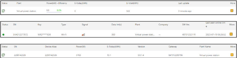 After locating your plant, click on the plant name to access it. Below, you’ll find the search results for the plant name, data logger (gateway) serial number, or inverter serial number.