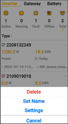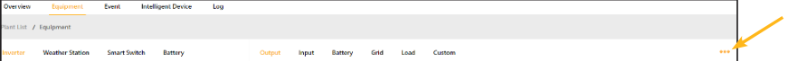 When selecting Equipment, it will display the inverter serial number. On the right-hand side, next to the inverter serial number, you will notice three small dots.