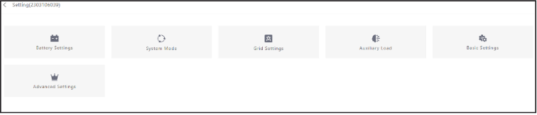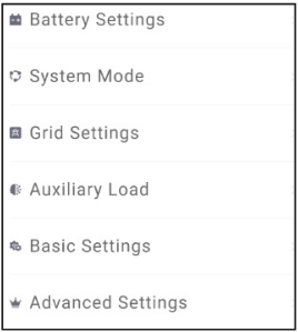 Selecting Settings will promptly navigate you to the settings page, where you can make adjustments to all inverter settings.