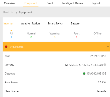 This action will successfully integrate the other inverter into this specific plant. If you wish to verify this, click on the plant name to access the Overview screen, and at the top of the screen, select Equipment.