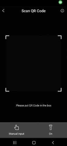 If you are not present at the installation site, you can select Manual Input located at the bottom left of the camera screen to manually enter the serial number and key.