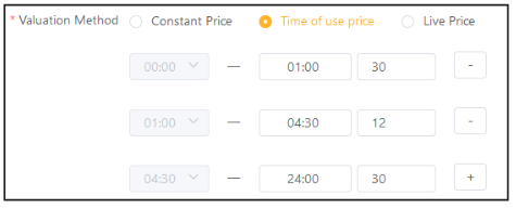 Time of use price refers to a tariff that changes depending on the time of day. You can use the + button on the right to add more times where your tariff might change. In the example shown below, you can see that between 01:00 – 04:30 the price is 12p per kWh, while the rest of the day its 30p per kWh.