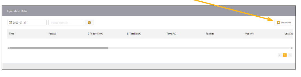 The Operation Data feature allows you to search for and download information about the inverters you’ve installed.