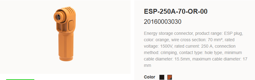 | 10000220 | ESP-250A-70-OR-00 | PP-144 | Batt 10.6kWh Connector 70mm² Positive |