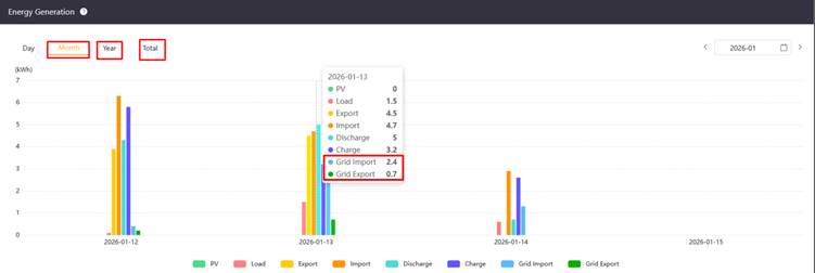 The values highlighted in Image 2 are now true grid import/export figures, based on the import and export power readings of the CT.